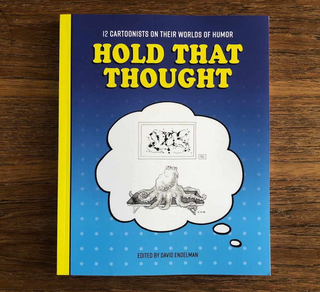 Hold That Thought, 12 Cartoonists on their Worlds of Humor, edited by David Endelman now available to borrow from the Vancouver Island Regional Library system, Vancouver Island, Canada. Hold That Thought, 12 Cartoonists on their World of Humor. Edited by David Endelman. Featuring: Isabella Bannerman, Suzy Becker, David Endelman, Jun Frogosa, David Gomberg, Theresa Henry, Ed Himelblau, Catherine Holmes, Beverley Kort, Sam Lay, Rose Anne Prevec, Jim Shoenbill (https://www.lesswordspress.com/ )